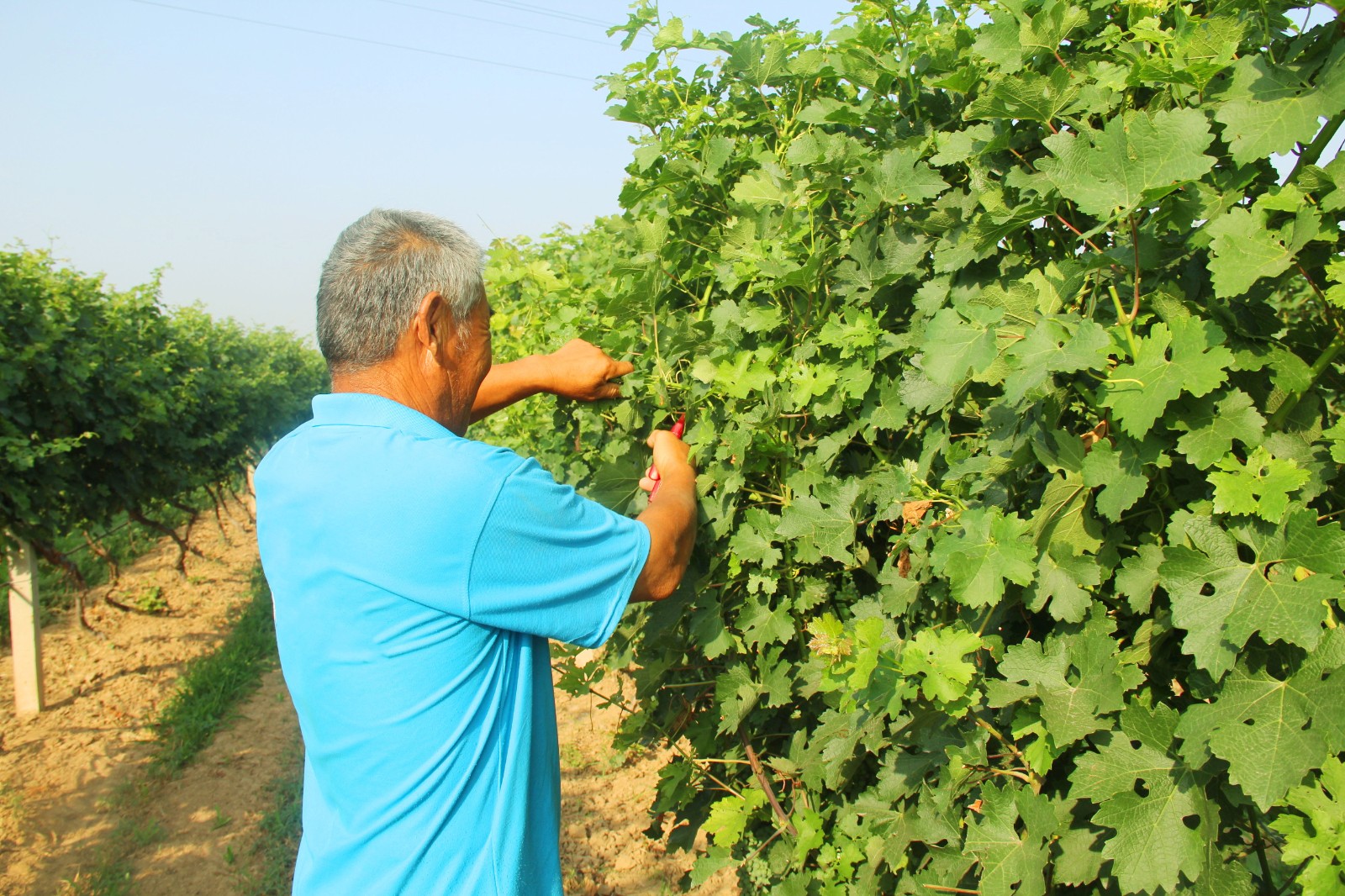 小暑正值初伏前后,空氣濕度逐漸加大,天氣由干熱轉(zhuǎn)為悶熱。七月,格瑞特葡萄種植園釀酒葡萄果實(shí)正在猛長中,辛勤的工人們正在進(jìn)行剪枝、鋤草工作,這樣有利于葡萄生長所需的通風(fēng)透光,也非常有利于莊園規(guī)范化、標(biāo)準(zhǔn)化和美觀化。