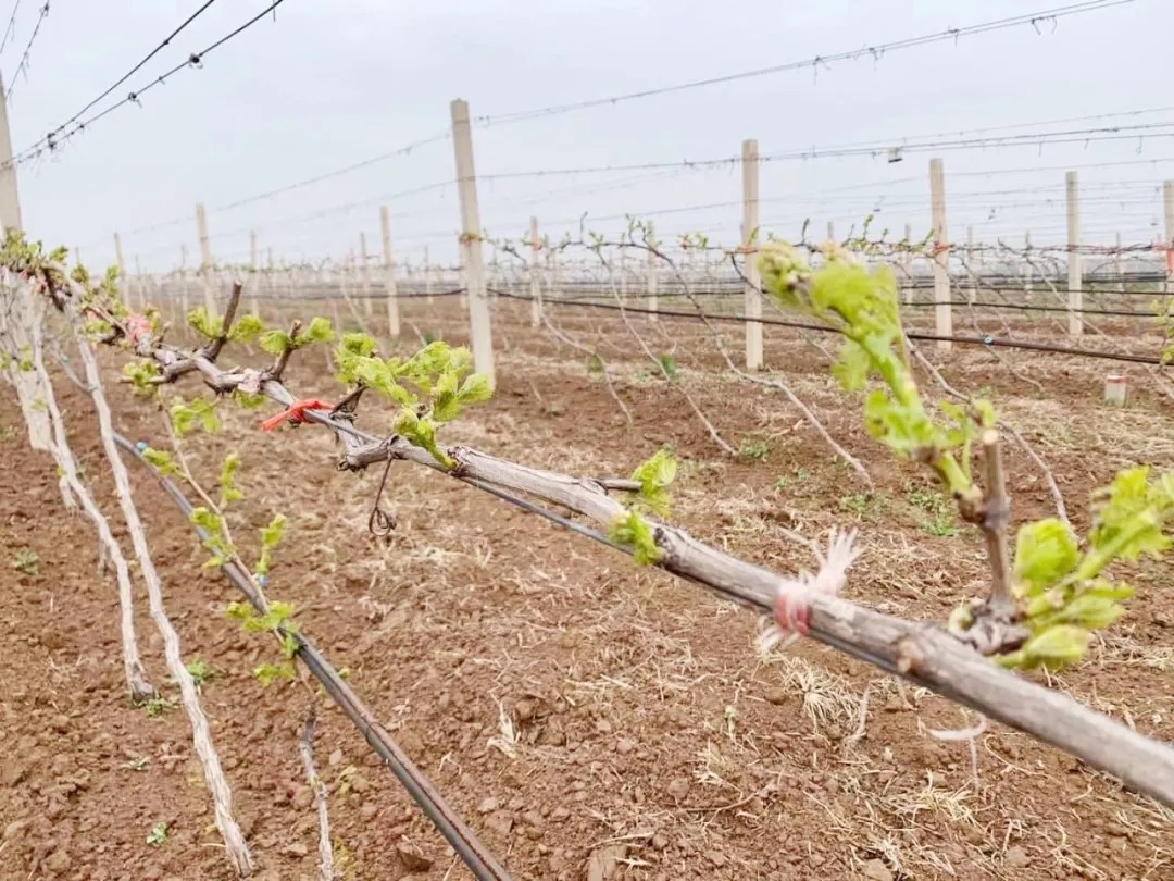 優(yōu)質的葡萄原料來源于卓越的葡萄園,是釀造佳釀的基礎,而作為原料提供者的葡萄藤每年都在不斷進行生命周期的輪轉。前段時間,葡萄園的工作人員還在進行剪枝、上架等工作,為葡萄藤在春天的快速生長做好準備工作。時至清明,春風和煦,草木青青,天氣清徹明朗,葡萄藤已經發(fā)芽了,格瑞特莊園迎來了新的生長季。